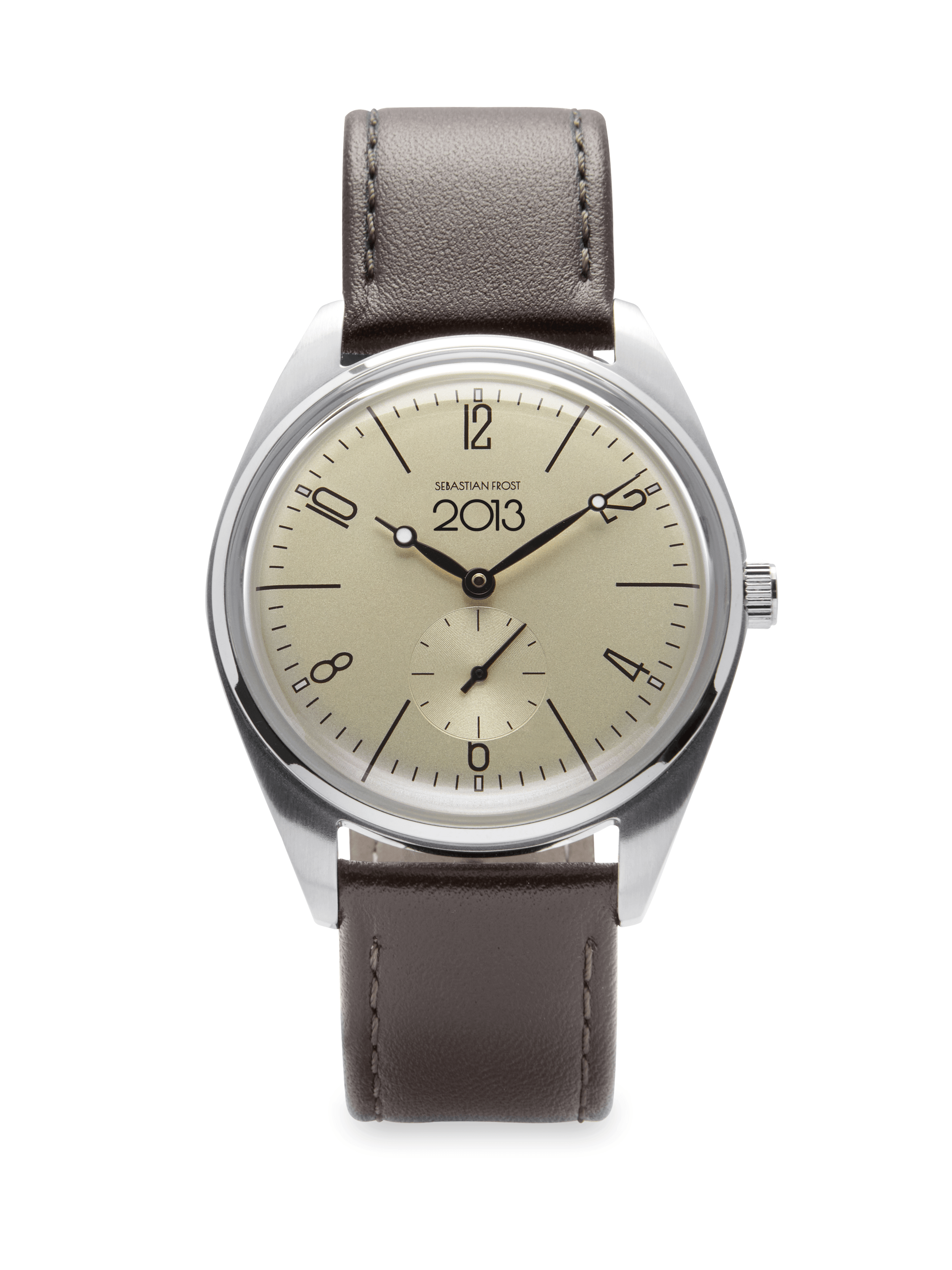 A vintage-inspired unisex watch with stainless steel casing, slightly rounded glass, a dark brown leather strap and the year number 2013 on the dial. To celebrate birthdays, graduations, wedding days and everything in between.